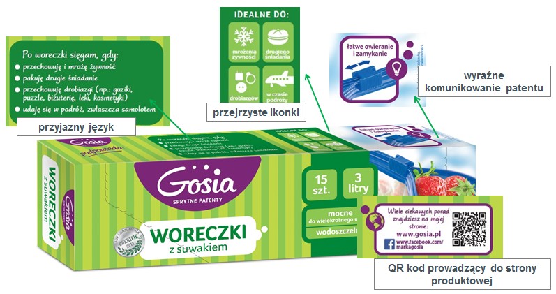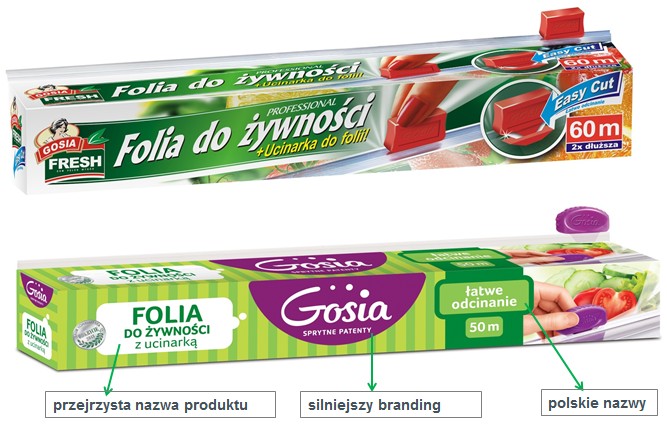 „Dbaliśmy o to, aby Gosia komunikowała się ze swoimi konsumentkami zarówno przez design jak i język przekazu bezpośrednio i optymistycznie, aby mówiła do nich jasno i konkretnie. Dlatego nowa szata graficzna produktów marki „Gosia” zwraca uwagę współczesną, miłą dla oka i wyróżniającą w kategorii grafiką i kolorystyką. Zadbaliśmy o przejrzystą strukturę informacji, właściwą hierarchię i czytelność, która udowadnia, że Gosia to marka-specjalista zdolna rozwiązać najbardziej skomplikowane problemy przy sprzątaniu czy przechowywaniu żywności” - deklaruje Małgorzata Leniarska, Partnerka Zarządzająca Dragon Rouge.