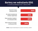 Główną barierą we wdrażaniu ESG, którą dostrzegają respondenci biorący udział w badaniu zrealizowanym na zlecenie VanityStyle, są koszty – uwagę na nie zwraca połowa ankietowanych, w tym 36 proc. firm produkcyjnych, 44 proc. przedsiębiorstw usługowych oraz 54 proc. podmiotów specjalizujących się w handlu. Przedsiębiorcy z sektora MŚP sygnalizują także zbyt małe kompetencje (40 proc. wskazań) oraz brak zasobów ludzkich (38 proc. wskazań).