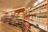 Ścieżka zakupowa kończy się w strefie kas samoobsługowych i tradycyjnych, zaprojektowanej z myślą o wygodzie. Przestrzeń została poszerzona, pojawiły się dodatkowe miejsca na koszyki, torby, karty podarunkowe i produkty impulsowe, a podział na kasy tradycyjne i samoobsługowe jest bardziej czytelny.