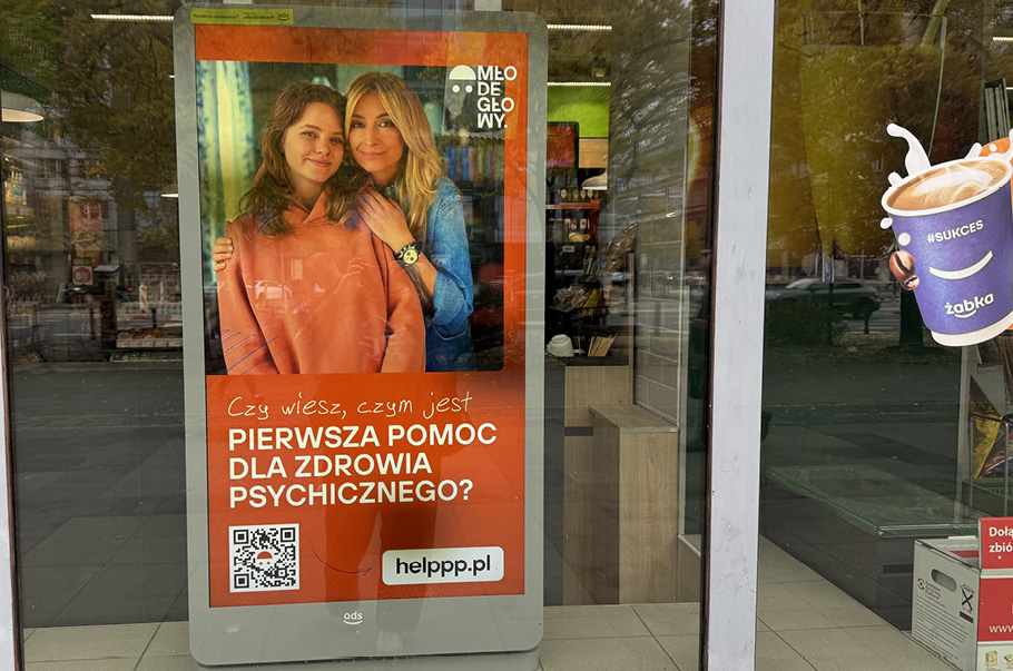 Według najnowszych raportów Światowej Organizacji Zdrowia aż 14% nastolatków w wieku 10–19 lat cierpi z powodu zaburzeń psychicznych . Dlatego z okazji Światowego Dnia Zdrowia Psychicznego, korzystając ze swojego narzędzia, Żabka Ads. Shopper-Driven Media obejmującego ekrany ulokowane w witrynach sklepów w całej Polsce, sieć wyemituje spoty, kierujące do strony pomocowej helppp.pl prowadzonej przez Fundację UNAWEZA. To na niej można poznać 3 proste kroki, które wskazują, jak zareagować, gdy ktoś potrzebuje wsparcia.