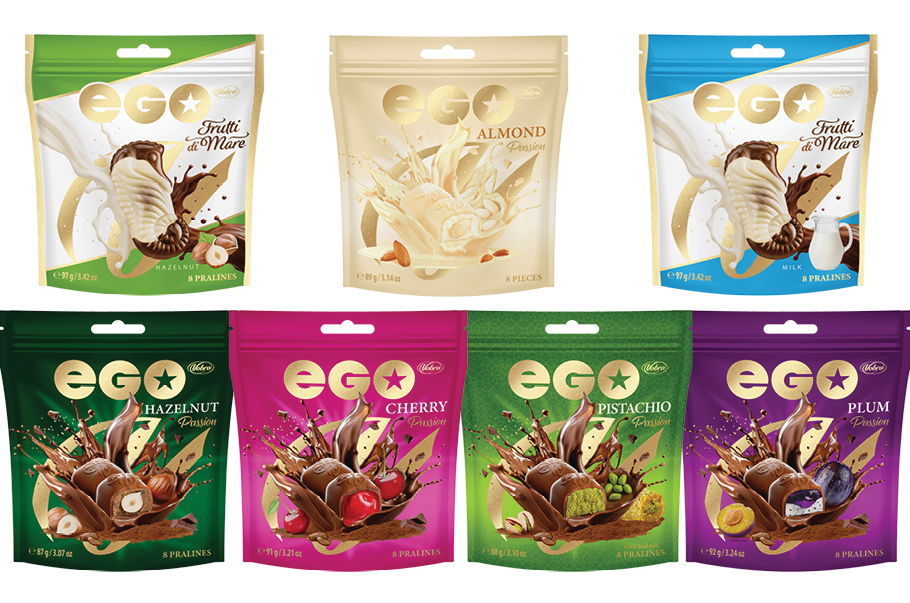 Każda z ośmiu pojedynczych pralin w opakowaniu EGO jest zapakowana w szczelną zawijkę typu flowpack. Konsument może w różnych sytuacjach zdecydować, kiedy zasługuje na małą pralinkową nagrodę – czy po długim dniu, czy w środku zwyczajnego popołudnia – bez potrzeby usprawiedliwiania się i tłumaczenia komukolwiek. Pod marką EGO dostępnych jest siedem wariantów smakowych pralin, z których każdy ma gramaturę poniżej 100 g.