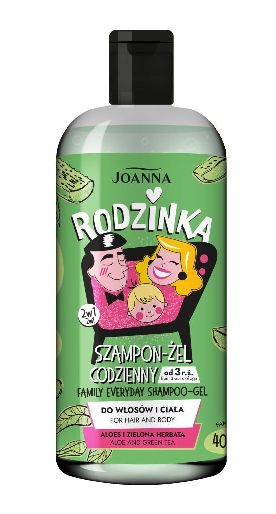 Linię Joanna Rodzinka inicjują dwa szampony odpowiadające na różne potrzeby codziennej pielęgnacji. Szampon-żel 2w 1 do włosów i ciała to uniwersalne rozwiązanie do mycia włosów i ciała. Dzięki neutralnemu pH jest odpowiedni do codziennego stosowania, także w przypadku skóry wrażliwej. Kosmetyk łączy funkcję oczyszczającą z pielęgnacją, zapewniając komfort i świeżość każdego dnia. Formuła została wzbogacona o składniki aktywne: