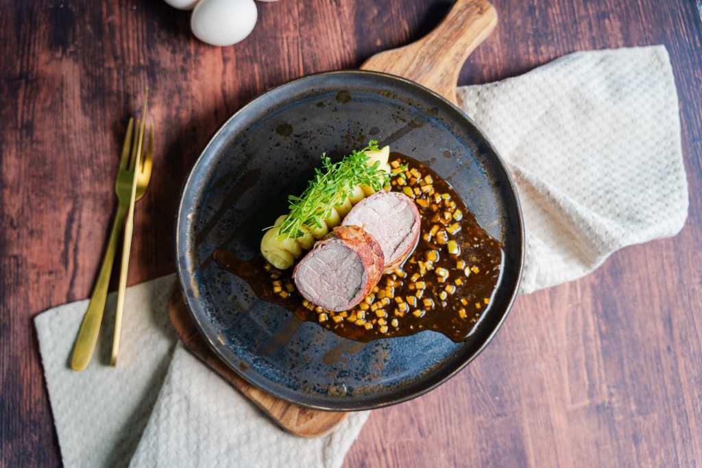 Program warsztatów skupiał się na poszukiwaniu innowacyjnych form podania tradycyjnych produktów. Ernest Jagodziński zaprezentował m.in. nowatorskie podejście do schabu po warszawsku, który przybrał formę eleganckiego mięsnego ravioli z kremem jajeczno-truflowym oraz galaretką jabłkowo-tymiankową. Bazą tego dania był Schab Sokołów „Jak u Dziadka”, który swój wyjątkowy charakter zawdzięcza procesowi wędzenia dymem z drewna bukowo-olchowego. Kolejną propozycją było danie główne: polędwiczka wieprzowa otoczona delikatnym mousseline i chrupiącym boczkiem wędzonym Sokołów Excellent Line, serwowana z sosem pieprzowo-jabłkowym. Dominik Moskalenko z kolei zaproponował autorską wersję białej kiełbasy Sokołów Naturrino, którą wyróżnia wysoka mięsność i czysty skład. Została podana na maślanym szpinaku z jajkiem poche i sosem holenderskim, w którym tradycyjny chrzan zestawiono z nutą wasabi. Warsztatowe menu zwieńczyły finezyjne desery z marakują w czekoladowych skorupkach.