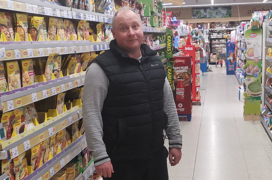 Jesteśmy zrzeszeni w sieci Odido, dlatego w większości zaopatrujemy się w Makro. Korzystamy również z giełdy, gdzie dostępna jest hurtownia mięsna oraz dostawcy warzyw i owoców. Nie korzystamy z dostaw – razem z mężem samodzielnie jeździmy po zaopatrzenie trzy razy w tygodniu. Cały asortyment transportujemy we własnym zakresie, ponieważ nie dysponujemy zapleczem umożliwiającym przyjmowanie towaru, szczególnie w przypadku dostaw paletowych. Obecna specyfika handlu sprawia, że taki model działania jest dla nas najbardziej odpowiedni. Ekspedientki na bieżąco dbają o uzupełnianie asortymentu i zgłaszają zapotrzebowanie, a lista zamówień jest sporządzana codziennie. Sklep otwieramy już o godzinie 5:00, co wynika z potrzeb lokalnych klientów – wiele osób dojeżdża do pracy na godzinę 6:00 i nie ma po drodze innych punktów sprzedaży. Najczęściej kupują u nas drożdżówki, świeże pieczywo, wodę lub napoje, dlatego poranny handel stanowi istotną część naszej działalności. W zakresie pieczywa współpracujemy z czterema dostawcami. Jesteśmy otwarci na potrzeby klientów – znają nas od lat i zdarza się, że proszą o dodatkowe produkty, po które specjalnie jeździmy. Sklep prowadzimy od blisko 37 lat, co pozwoliło nam zbudować trwałe relacje i elastycznie reagować na oczekiwania kupujących.