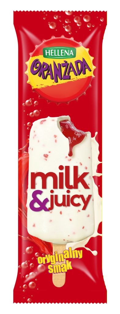 Jedną z kluczowych nowości jest Oranżada Hellena milk&juicy - lody na patyku o smaku śmietankowym z oranżadowym sosem. Całość uzupełnia biała polewa z dodatkiem liofilizowanej maliny, która podkreśla kontrast i wzmacnia wielowymiarowe doznania smakowe. Produkt stanowi rozwinięcie linii inspirowanej kultowym napojem i wzmacnia jej obecność w segmencie lodów impulsowych.